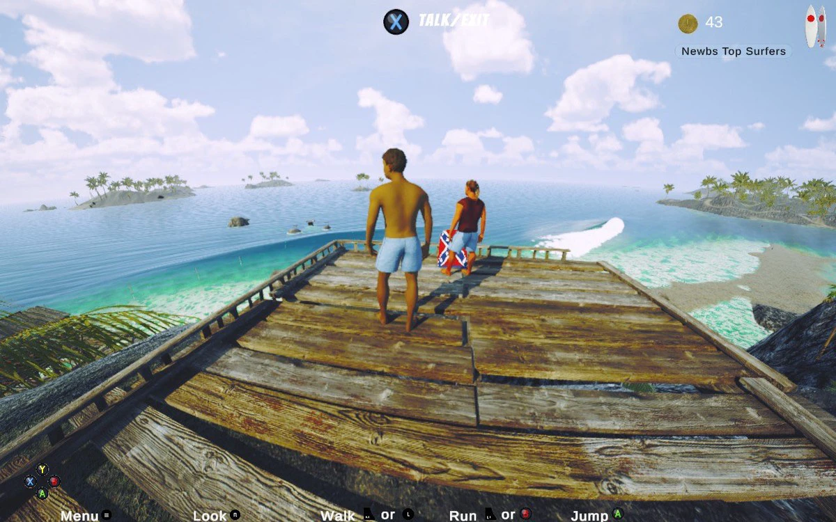 No, I actually really enjoyed that part. I was able to write the story through each character and tie it all together into something cohesive. I liked being able to start a different story with a character or something on the islands and then make a cause and effect. A good example would be the gold coins in the game. I was trying to figured out how the pirates I included in the game could be involved. Once you bring all the gold coins to the pirate captain, you will unlock a new surf wave. I also hid a little Easter egg in there; the captain's name is Jack O’Niell. If you didn’t know, he was the inventor/founder of O’Neill wetsuits.